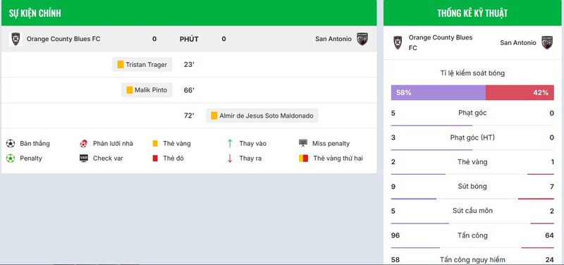 - Thống kê chuyên sâu: bàn thắng, phạt góc, thẻ phạt, phạm lỗi…